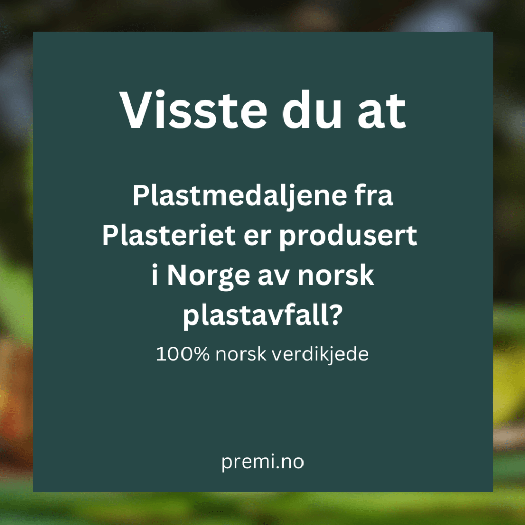 Det er Marius Momyr, Camilla Bergmann og Roar Eriksen, og de andre ildsjelene i Trygg Lade som har tatt initiativet. De så at det var mulig å velge en mer klimavennlig premie – medaljer laget av norsk plastavfall. Ressursene er allerede i kretsløpet, og produksjonen foregår i Norge, noe som reduserer utslipp på flere plan.